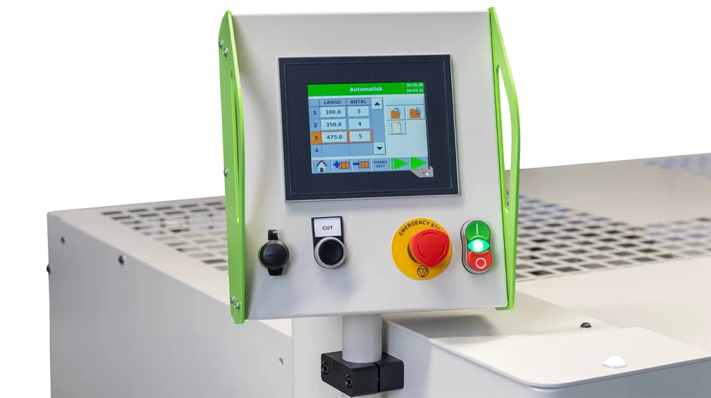 - 750 mm eller 1000 mm motordrivet bakre anslag, i enkelt eller programmerbart läge.