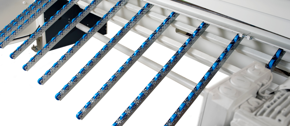 Extra skenor med rullar för pneumatisk plåtupphållare